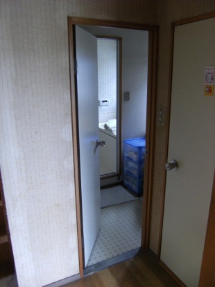 洗面室入口の開き戸が狭く、全自動洗濯機も入らないため、入口を広く使い易くしました。