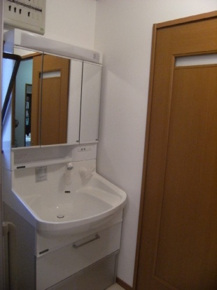 有効寸法687mmの引き戸にして、洗面室自体の広さは変えず、有効に使える様にしました。