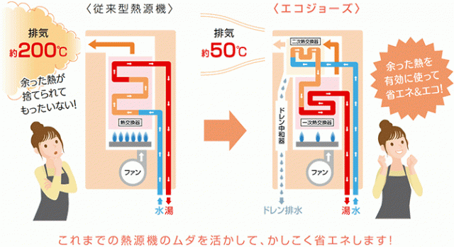 ecoジョースは排気の熱も利用していますので節約できます。