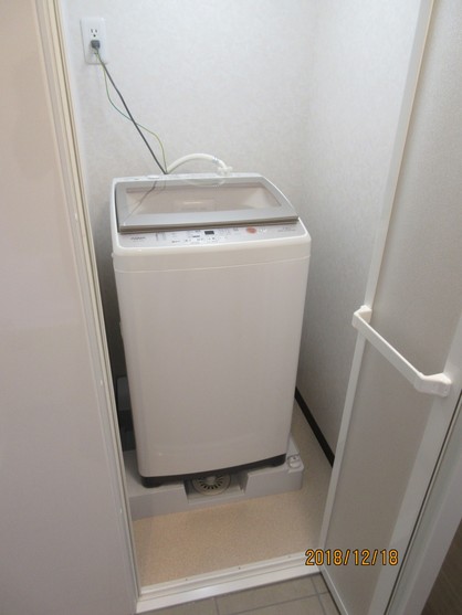 また、お風呂のお部屋に洗濯機が置いてあるスペースがありました。