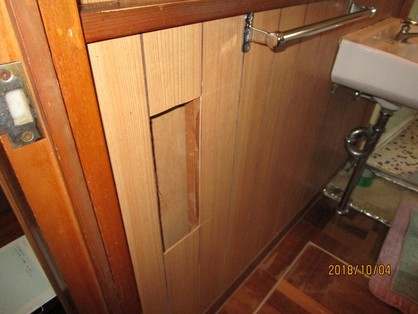 ・こちらは、腐食箇所の直しのため洗面所の床を解体するにあたり、洗面器の取り替えをご希望されておりましたので、配管スペースであった壁を解体し、スペースを広くしました。