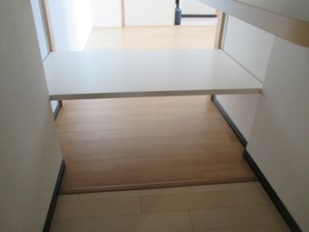 和室とウォークインクローゼットの間仕切り壁を解体、床の畳や押入れの床を撤去してフローリングを張り替えました。押入れ内とウォークインクローゼットの壁はクロスを貼り替えさせていただき、床は既存の床と新しいフローリングの境に見切り材を取り付けております。