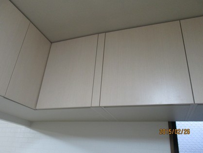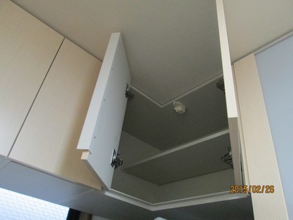吊り戸棚のコーナー部分も、両方から扉が開いて収納できます。