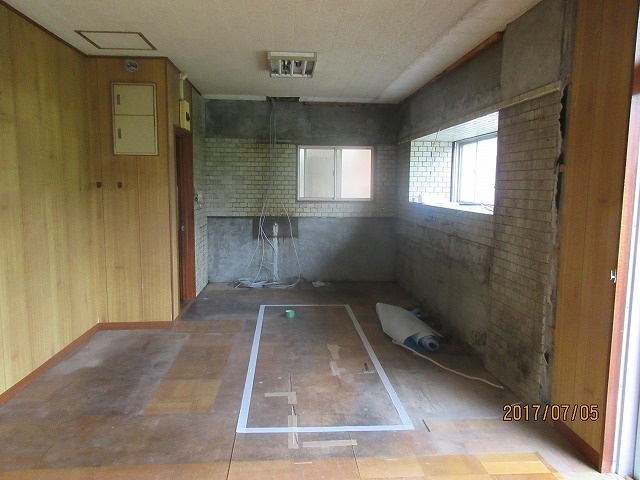 - ↓●施工中● 既設キッチンを外し、新しいキッチンの墨出し中です*