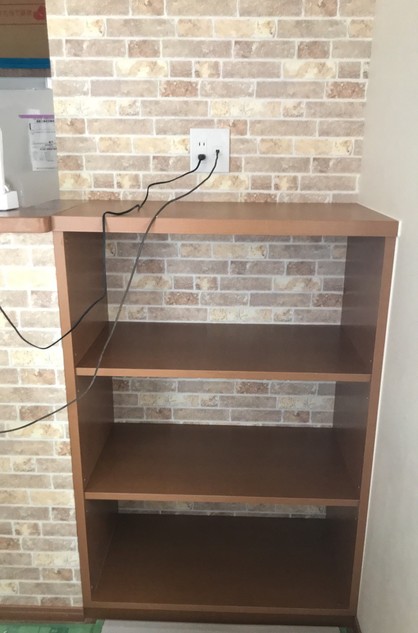 「棚の間から壁紙が見えるようにしたい」との奥様からのご希望で施工致しました**