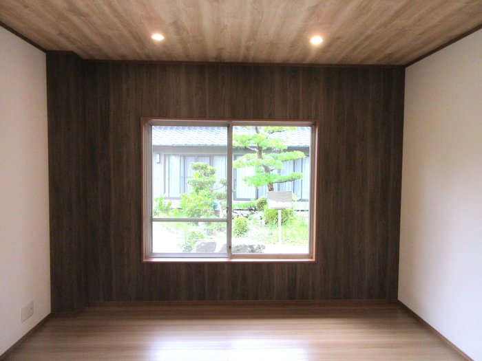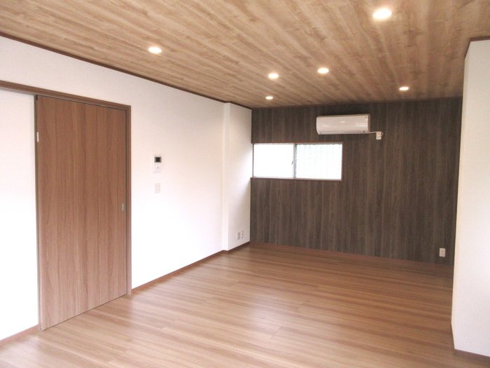 また、お部屋全体の天井・壁・床の張替も一緒に施工してもらい、パッと明るく、温かみのある木目調のお部屋になりました。