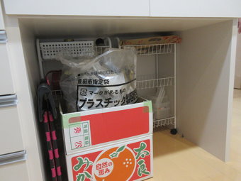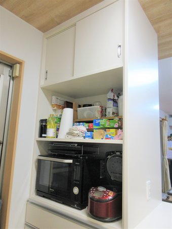 | 使用材料 | タカラスタンダード トレーシア パナソニック 耐水集成カウンター (キッチン正面可動棚) 特注家具 特注アウトセット建具 |
