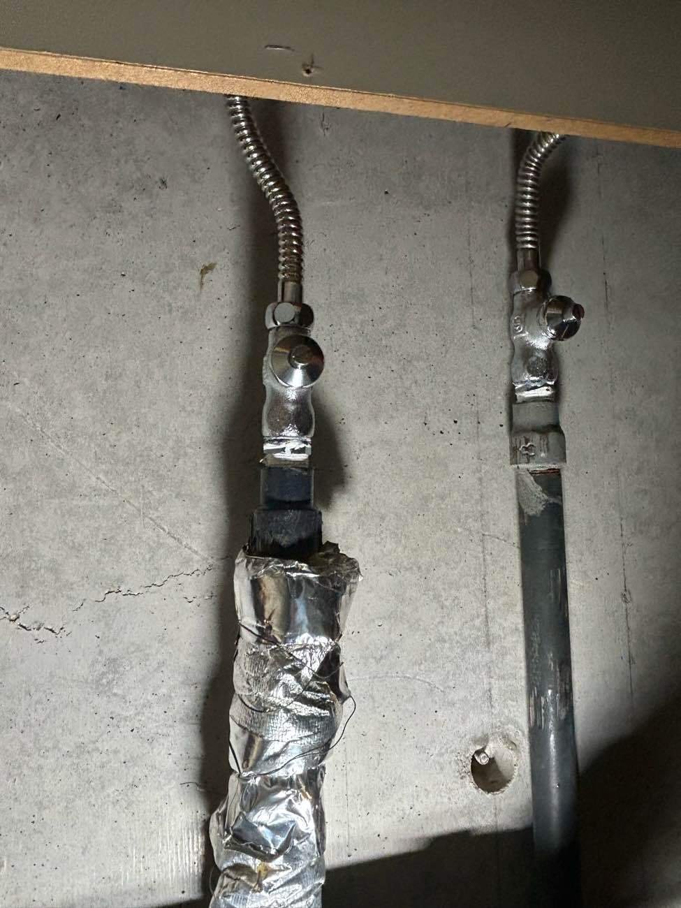 ご友人様からのご紹介でお問い合わせをいただきまして誠にありがとうございます。お客様の給水管が板で塞がれていたためこのようなことがない限りお目にかかることがないかと思います。今回の水漏れを機に止水栓も取り付けさせていただきましたので、今後のもしもに備え安心してお使いいただけることと思います。ご依頼をいただきましてありがとうございました。
