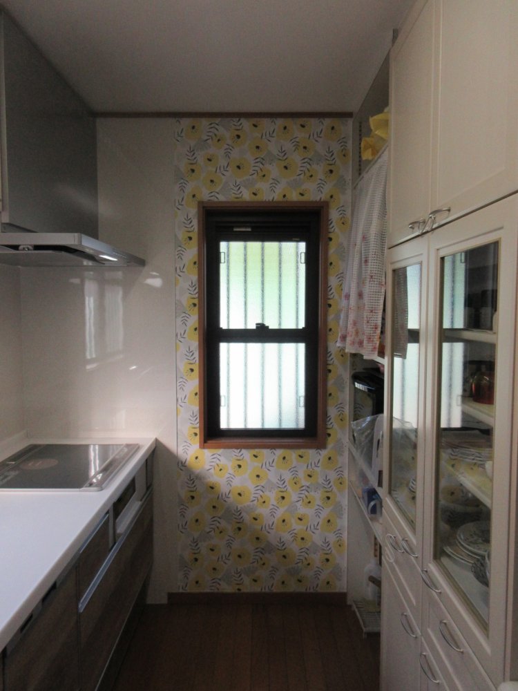 背面収納の吊戸を外すにあたり天井クロスの貼替をご提案しました。