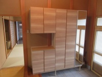 お宅が和風でしたので、その雰囲気を壊さないような玄関収納をご提案致しました。