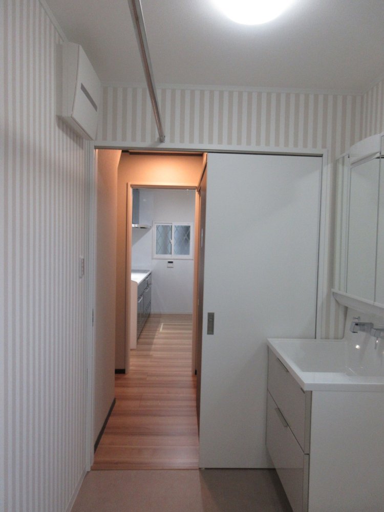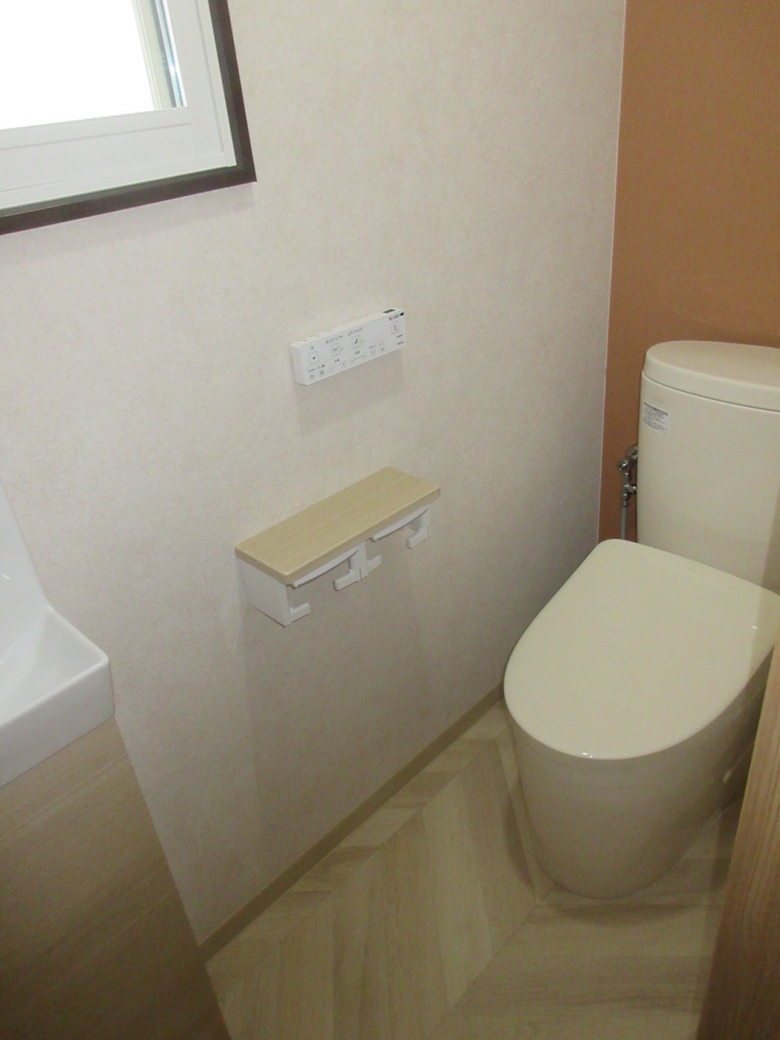 1階トイレの洗面所側に壁と建具を移動することで広くできました。