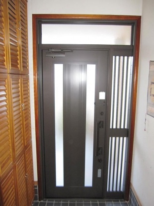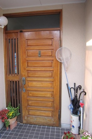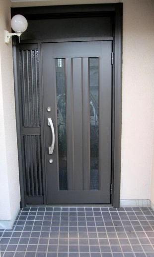 木製ドアで手入れが大変だったので、アルミドアに取り替えました。