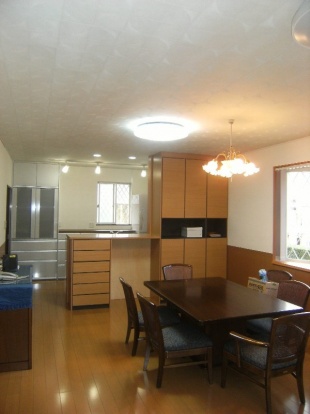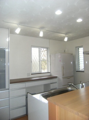 | 使用材料 | キッチン:クリナップ クリンレディ カップボード:クリンレディ 収納棚:パナソニック キュビオス 床材:パナソニック ジョイフロアタフネス 腰壁:パナソニック 腰壁パネルフラット調 壁:はいからペット 天井材:ダイケン ソフトーン10 カウンター:パナソニック スポットライト:パナソニック |
