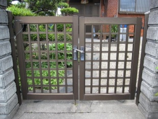 | 使用材料 | TOEXプレリオR7型門扉07-10両開きRD錠 TOEXハイサモアH800ブロンズ |