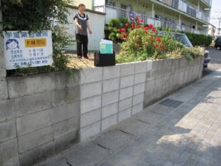 (お客様の希望・・・門柱が傾き、鍵も壊れてしまったので取り替えたい。これから家庭菜園を始めるので落下防止のためと、小学生の集合場所になっているので安全のため)