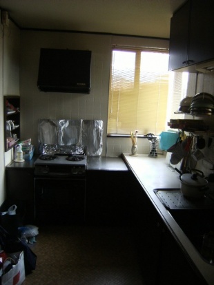 | 使用材料 | キッチン: クリナップ クリンレディ W=2550L型 収納 : クリナップ クリンレディ 引戸 : パナソニック電工 床 : クッションフロア 壁・天井: 珪藻土 はいからペット |