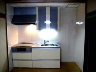 | 使用材料 | システムキッチン:ラクエラI型1800タイプ 床材 :パナソニックジョイフロア 天井 :ダイケン ソフトーン |