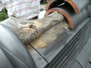 <担当者から>棟の土や漆喰・スレート瓦等が相当劣化していたので、この時期で補修・塗装できて良かったと思います。放っておくと雨漏りの原因になり、家全体の傷みに繋がります。気になる方は早めの対応をお勧めします。