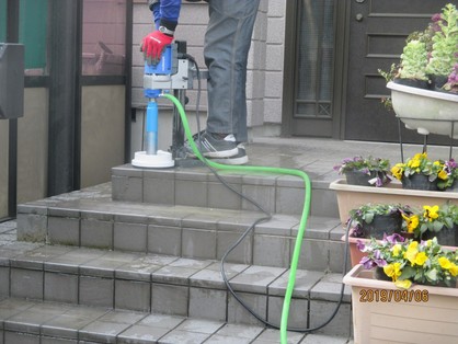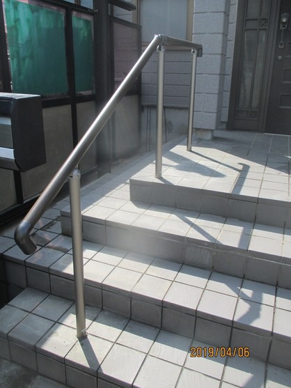 今回取付けたのは樹脂が巻いてあるタイプの手摺なので夏でも安心してお使いいただけます。