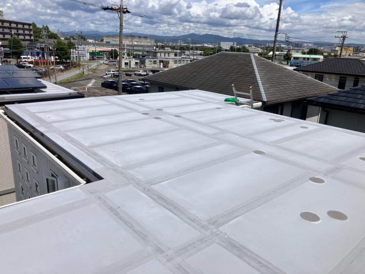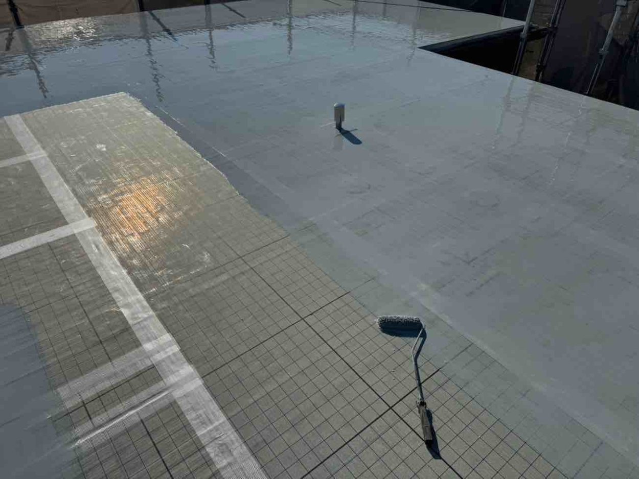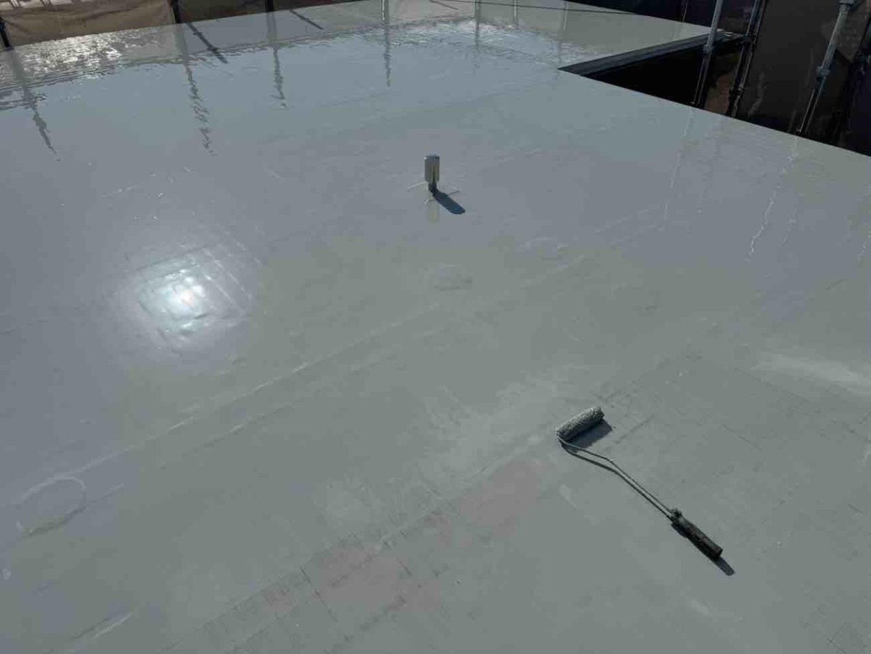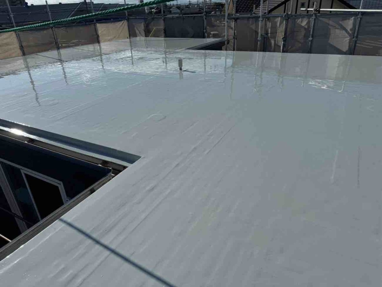 今回は塩ビシートの上からウレタン防水にて施工致しました。耐久性は10年程です。10年後は表面のトップコートを再塗装してメンテナンスを行います。大手はハウスメーカーさんのベランダで施工させて頂いております。