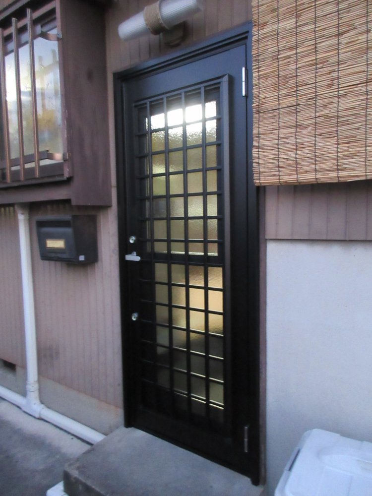 道路に面して人通りは多いけど、ガラスが大半の勝手口なので防犯上とても心配していました。