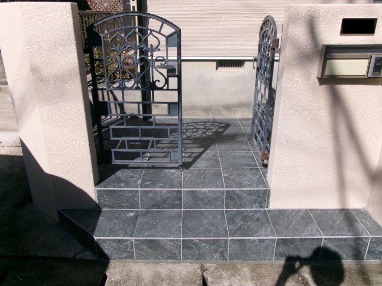 以前から玄関まわりのタイルが浮いてきたり割れてきたりするようになって、地面が下がってきているのではと思うようになりました。部分的に直そうか悩んでいましたが、高齢の母と同居するため外部に手すりを付けることになり、この際すべて貼り替えようと決めました。以前と比べて1枚1枚のタイルが大きくなり、表面もザラザラしていて滑りにくい仕様にもなっているので安心できます。ホテルのような雰囲気のタイルで高級感もあって良かったです。ありがとうございます。