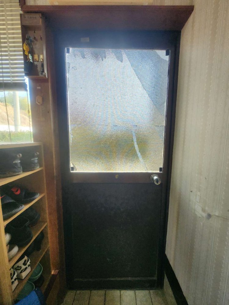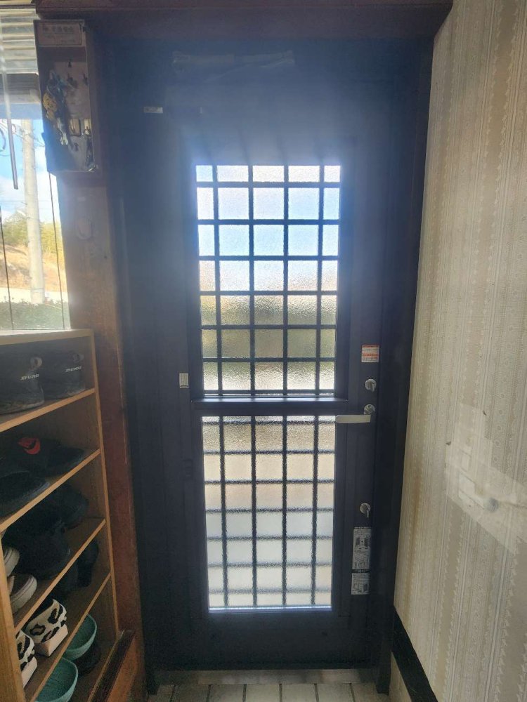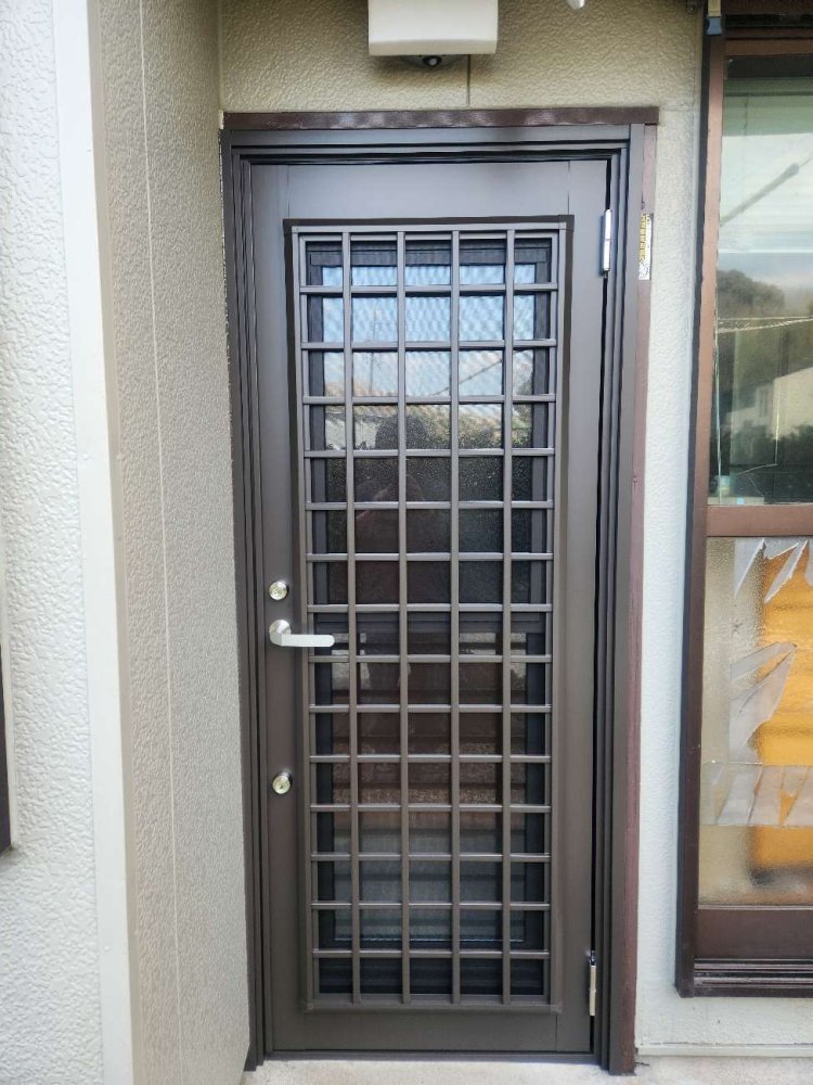 ロンカラーのドアから採風式のアルミの勝手口に交換しました。工事は9時から14時ぐらいまでかかりました。ロンカラーと比べると重いですが、防犯性は非常に高くなります。