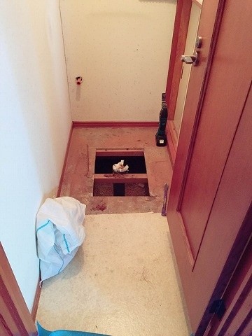 約半年前からトイレから水漏れしているとの事でしたので床の腐食状態が心配されました。
