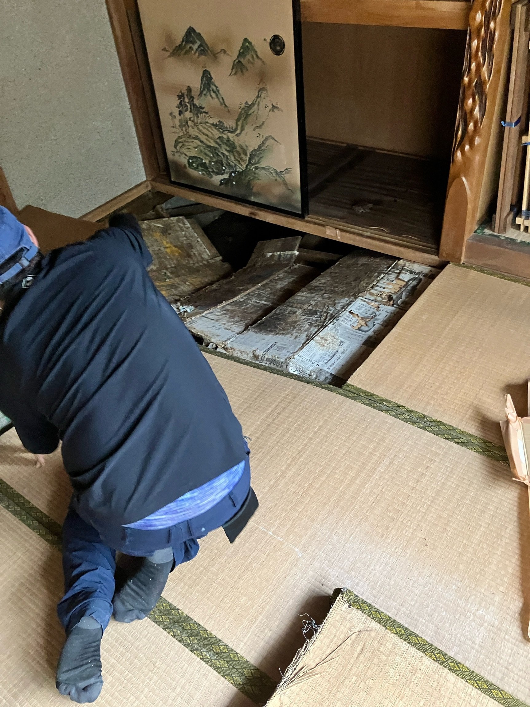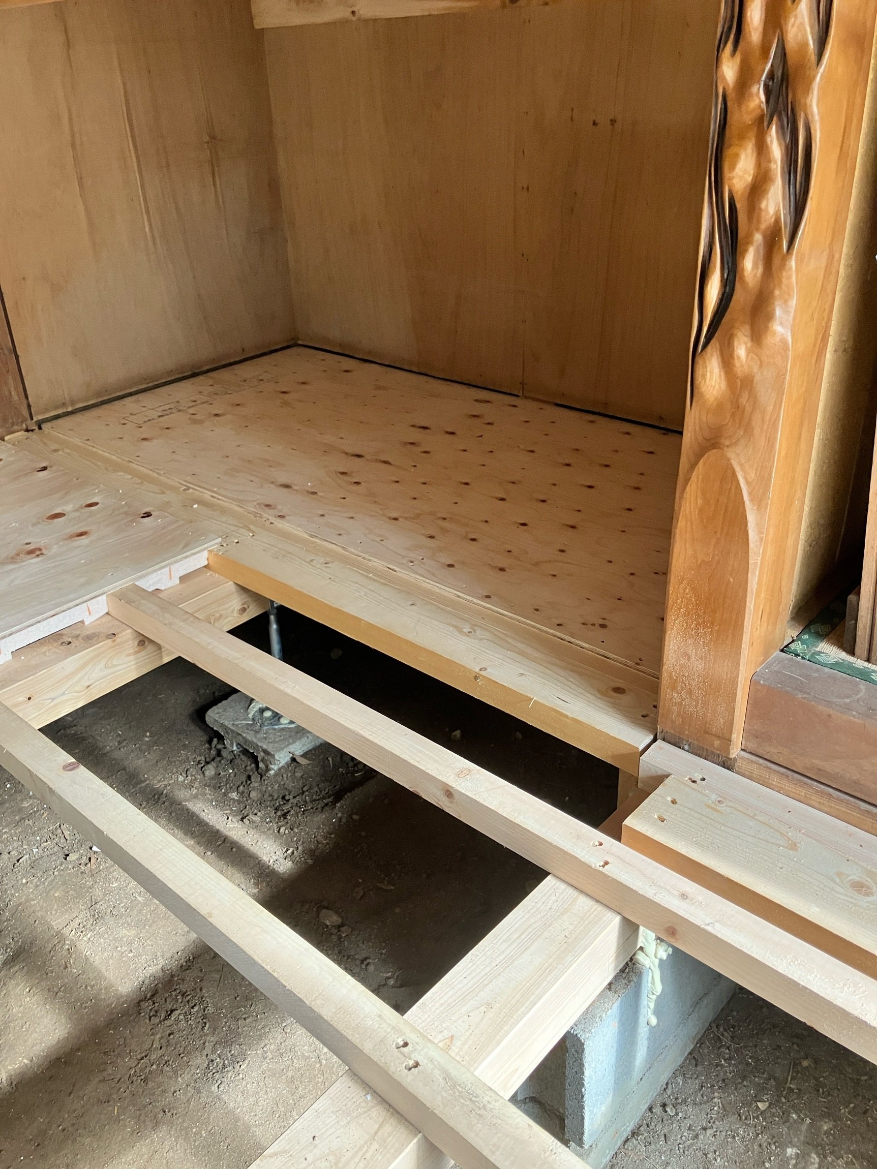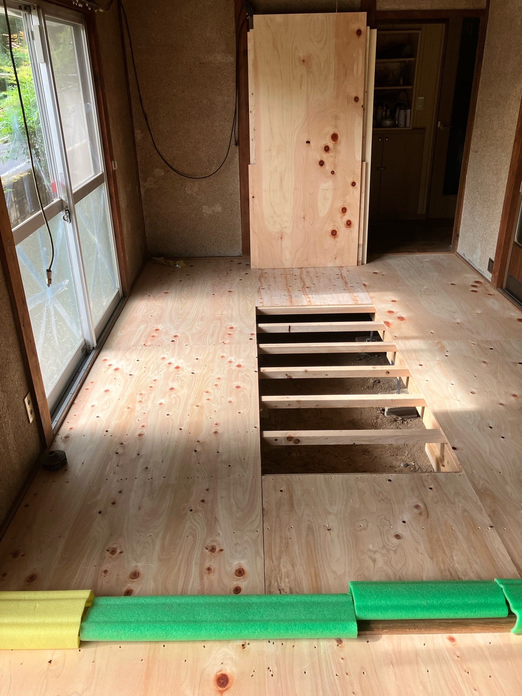気づけば床がふかふかしていて、抜けてしまっている状態でした。以前雨漏りでお世話になっているヤマハナさんに相談して床を作り直してもらいました。