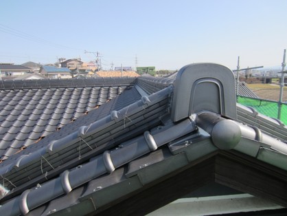 屋根瓦の棟、漆喰も一緒に修理