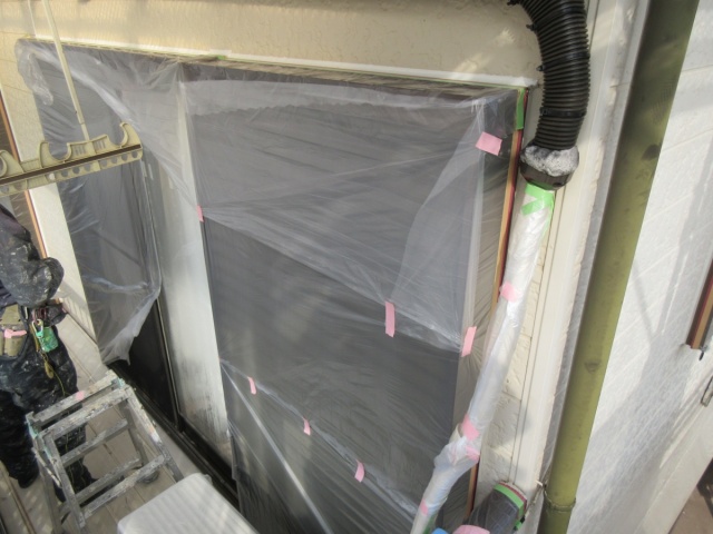 塗らないサッシなどにはしっかりと養生(ビ二ール)させて頂き汚れないようにしています。