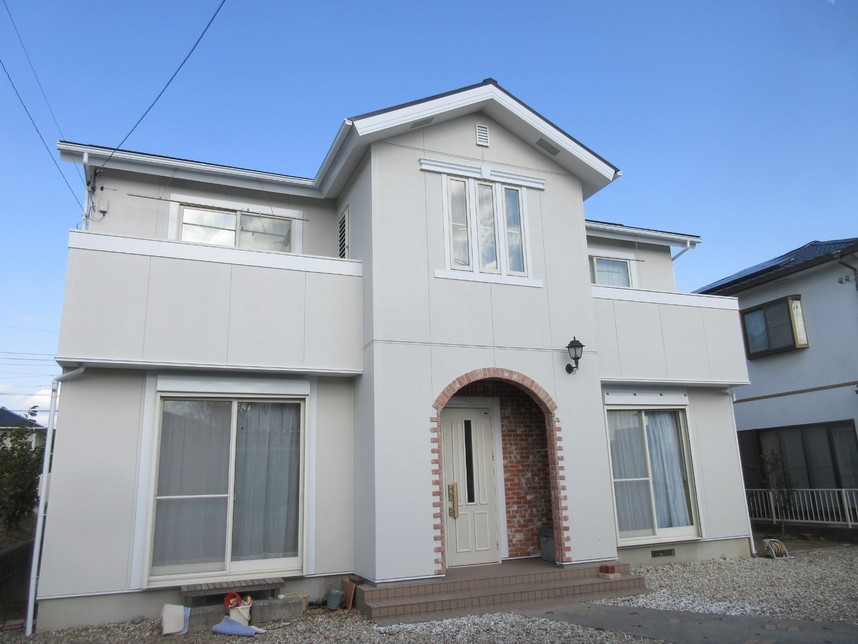 白色を表現するのに、外壁の元の色の透けが出ないように、フィーラーを塗装し、一度真っ白にしてから仕上げていますので、色透けもなく出来上がっています。
