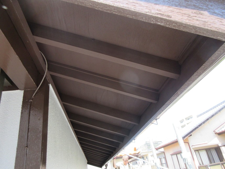 今回は15年の耐久性のあるフッ素塗料にて施工致しました。艶感も出て、家自体も若返って見えます。また、軒天の腐食に関しては雨漏れが原因でしたので、雨漏れを直してから施工しました。
