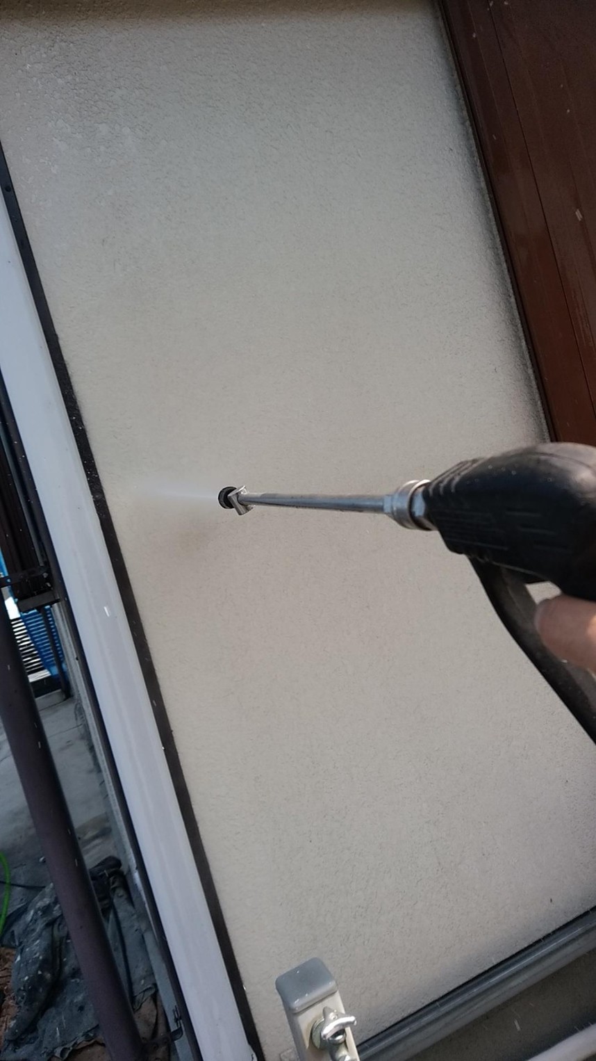 外壁塗装の前に洗浄を行います。ガイソーパワークリーナーを使用して、カビやコケの根まで分解して、下地処理を行います。