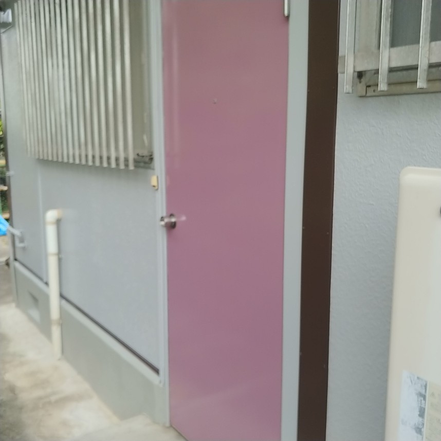 勝手口はこだわりの藤色にて施工させていただきました。