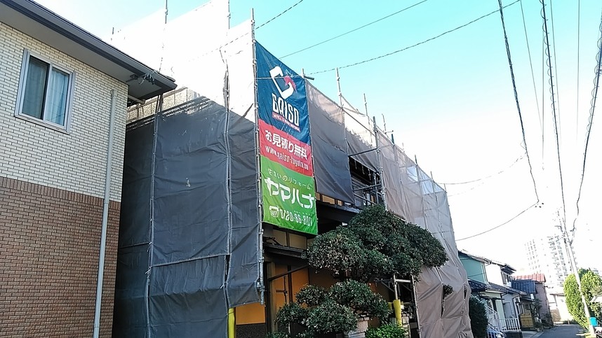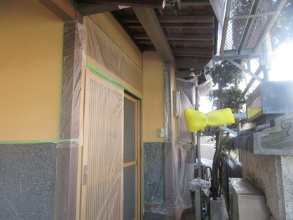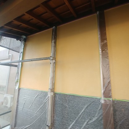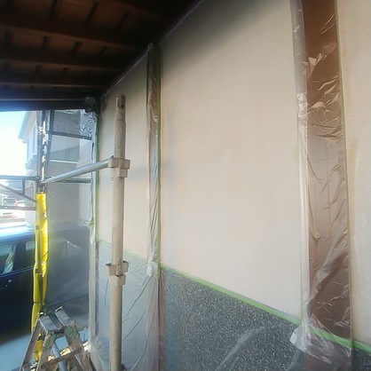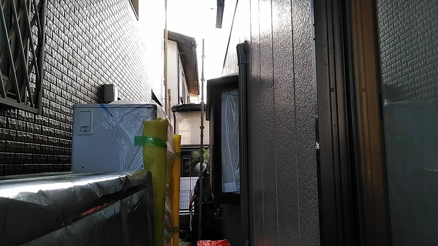 隣の方の敷地に入って施工する必要がありましたので、挨拶と養生の許可を頂きまして、施工を行いました。