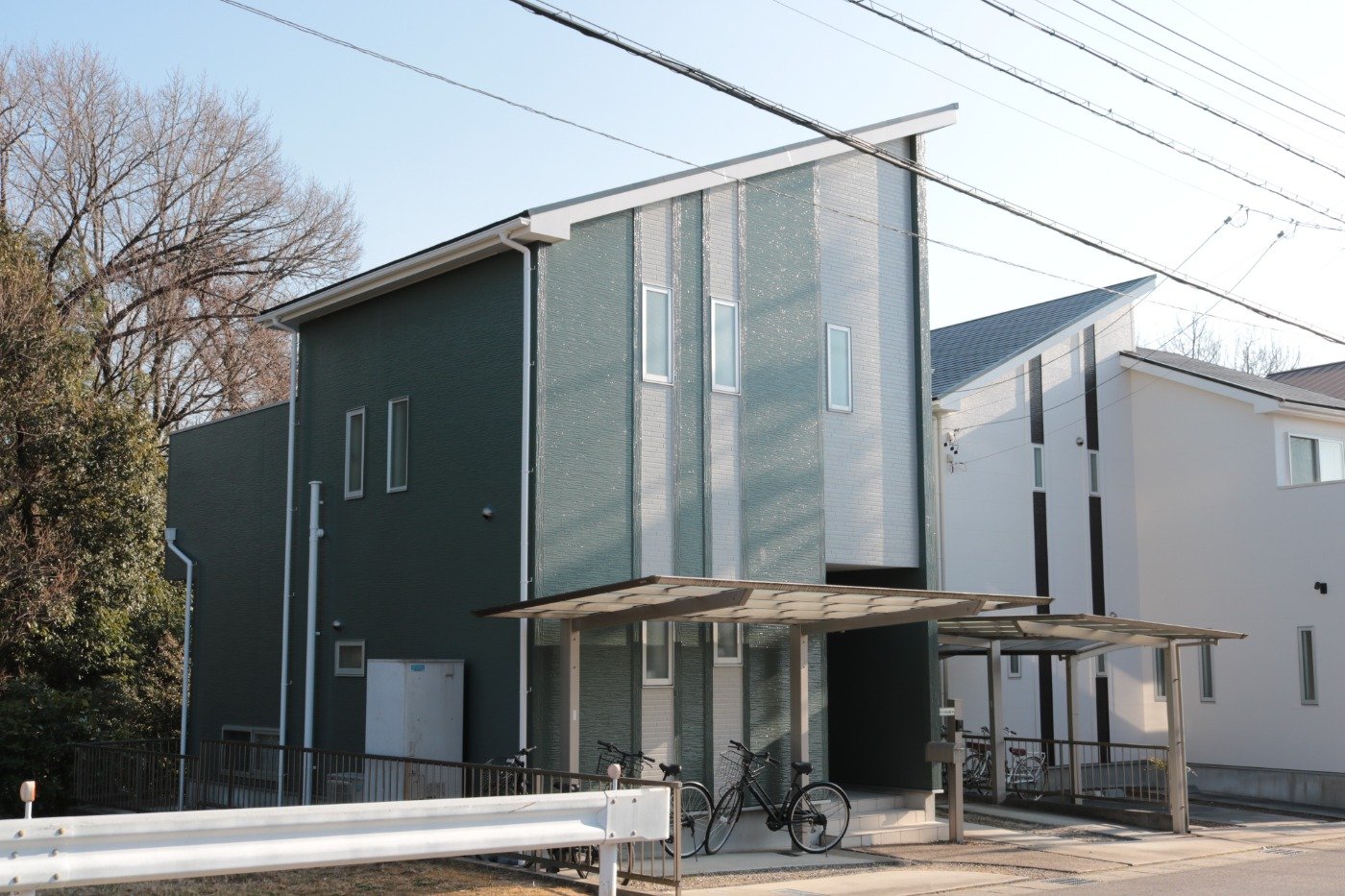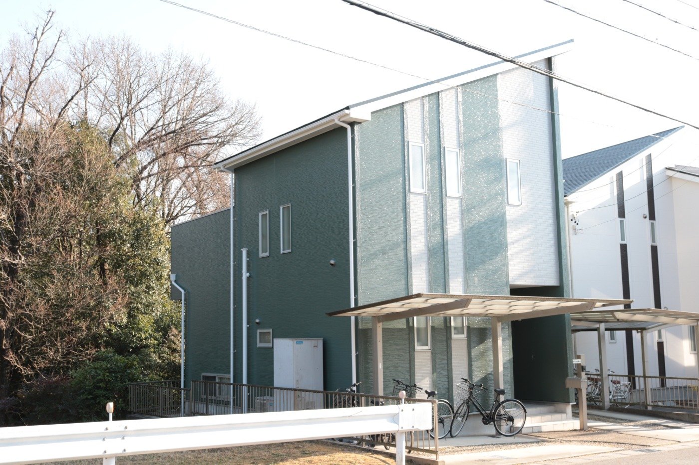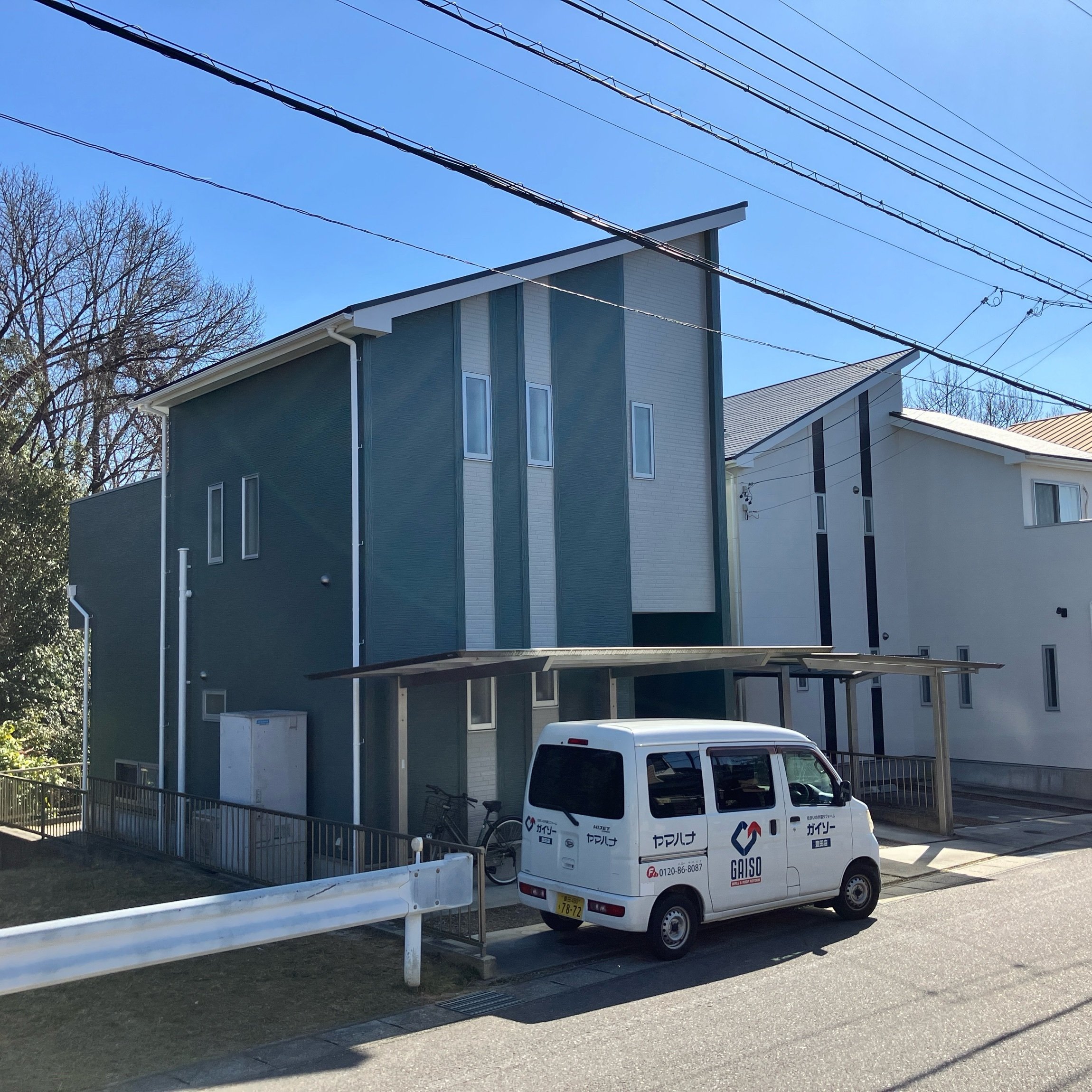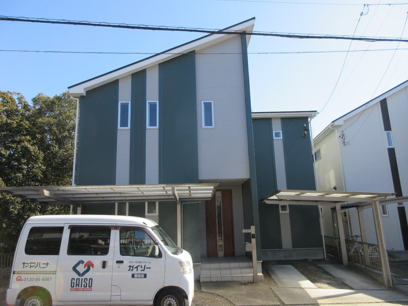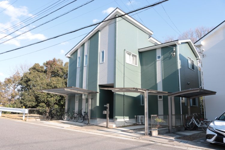 外壁はグリーンをメインカラーにして2トーンで仕上げました。