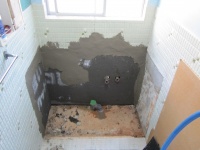 壁から浸水していたので水に強くて丈夫なステンレスの洗面をお勧めしました。