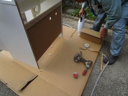 約30年使っている洗面台が水漏れして、気づいたら洗面台の底の木板が水浸しだったわ