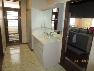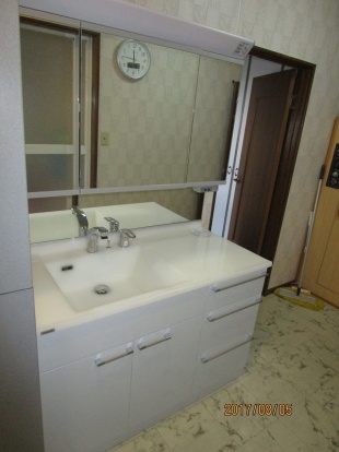洗面台が2階にあるので、今まで設置していたものを取り外して、1階に下ろすのに大変苦労されていました。逆に新しい洗面台と鏡も、2階に上げてもらうのに大変そうでした。色合いも選んだものが他の家具や部屋の雰囲気と合っていたので良かったです。これで快適に使えると思います。ありがとうございました。