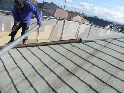 アスベストの問題も気になっていて、屋根材を下す事も考えましたが、撤去の時点で飛散することや、その時の近隣を考えて、カバー工法にしてもらいました。