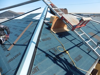 棟などの部材を撤去したのち、新規に防水シートを葺いて施工をしていきます。