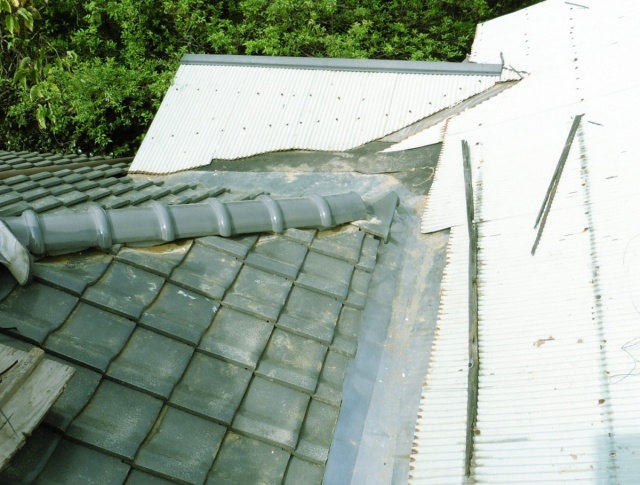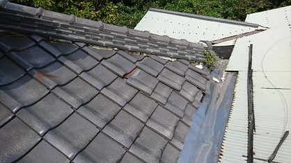 2階の棟は瓦に接着剤のようにコーキングで固定をしていました。
