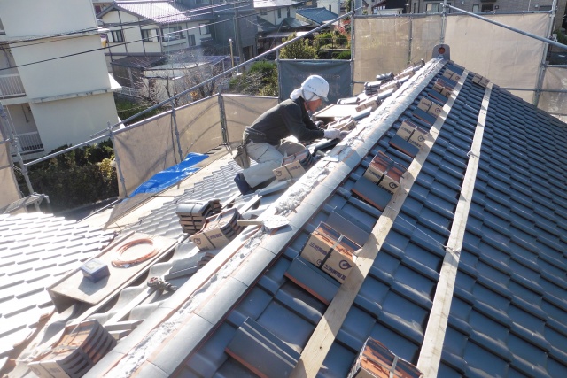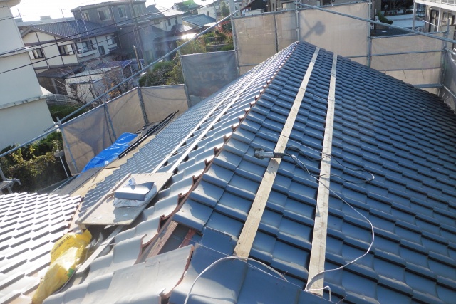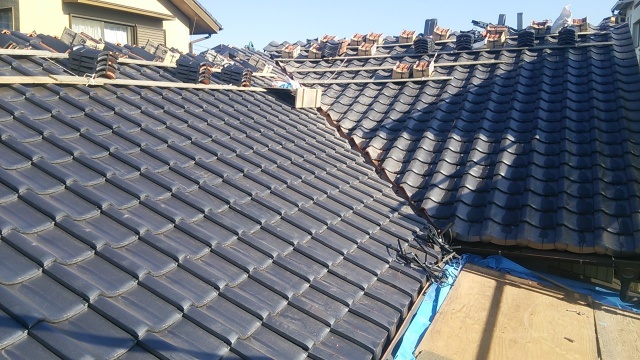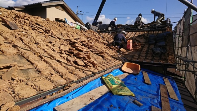陶器和瓦から陶器和瓦への葺き替え現場になります。