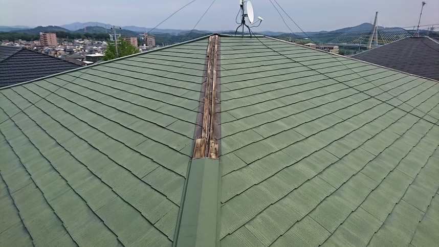豊田市H様邸台風被災修繕工事 カラーベスト棟板金取替工事