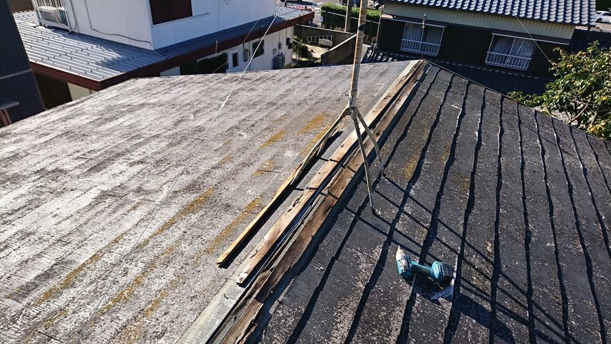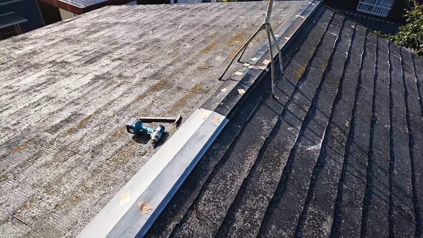 腐食部以外は既存のカラーベストの上から新規の屋根材を葺いていきます。