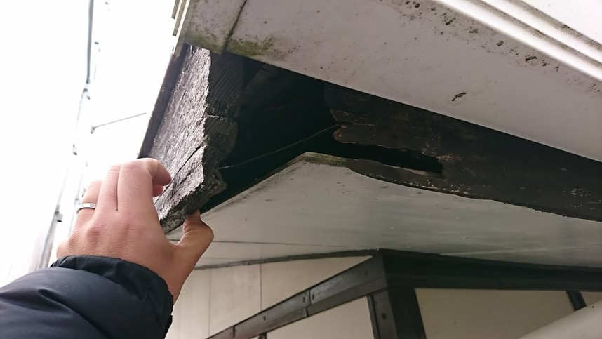 室内に出ていなかっただけで屋根は雨漏りをして、木部が腐っています。
