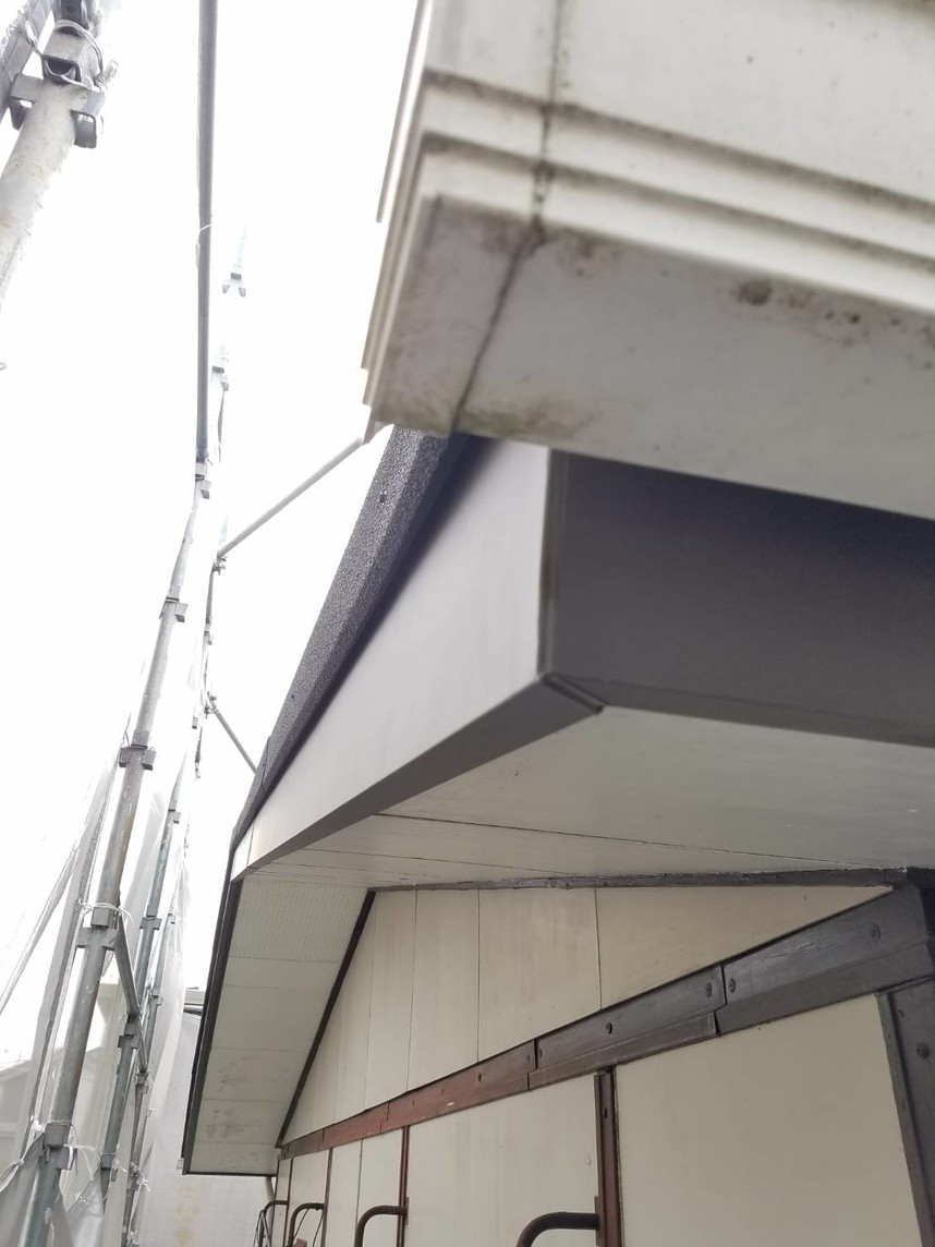 木部の破風は板金で施工しましたので、取り合い等もきれいに納まっています。