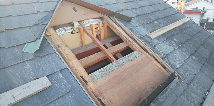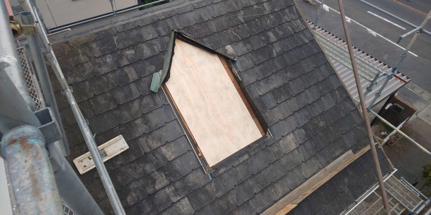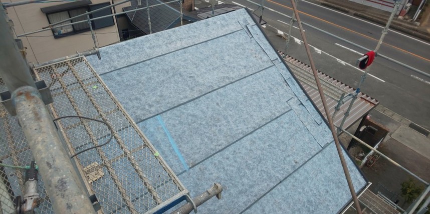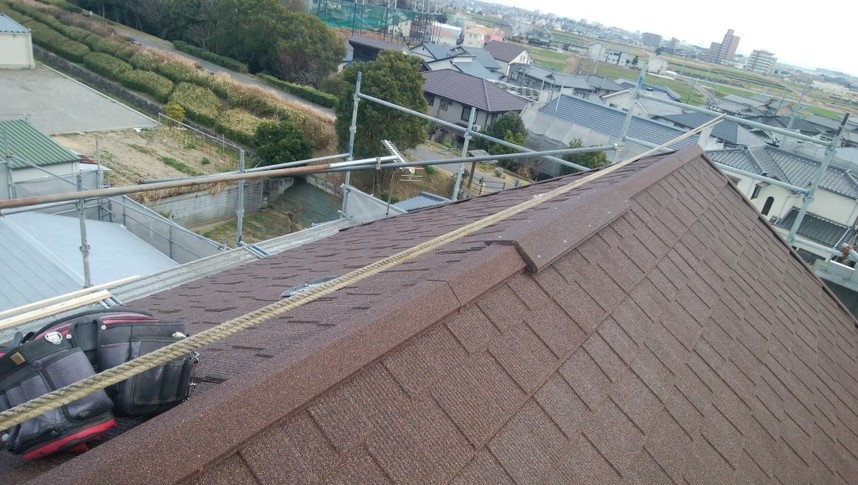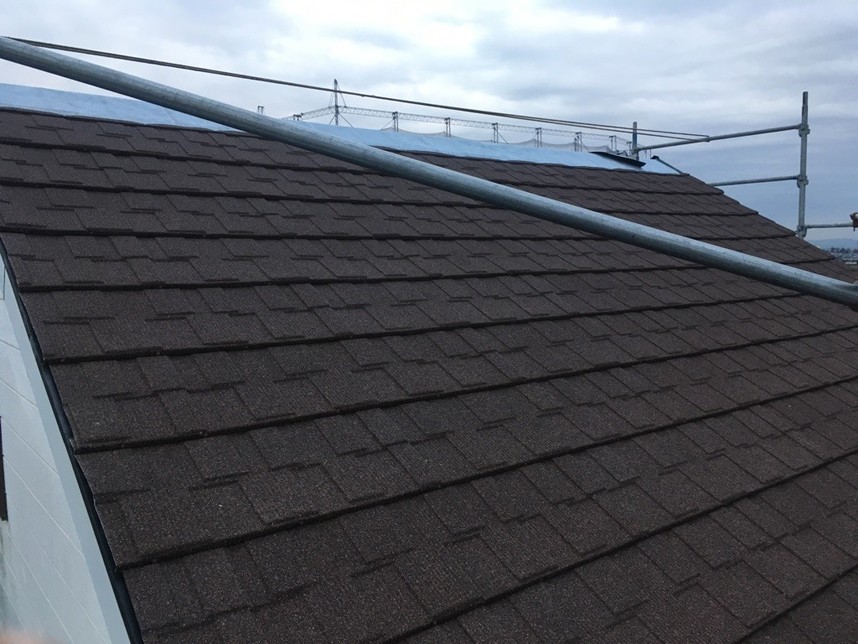屋根の勾配も6寸勾配と急でしたので、台風後工事の段取りを調整して行いました。