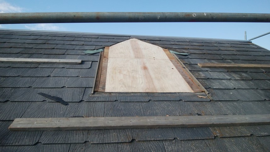 ドーマ―部分は飾りになっていましたので、雨仕舞を考えて、撤致しました。
